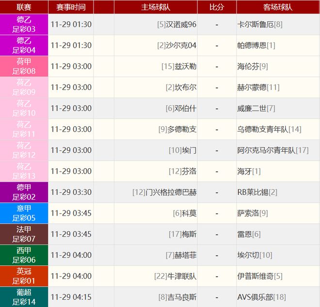 其他赛事比分: