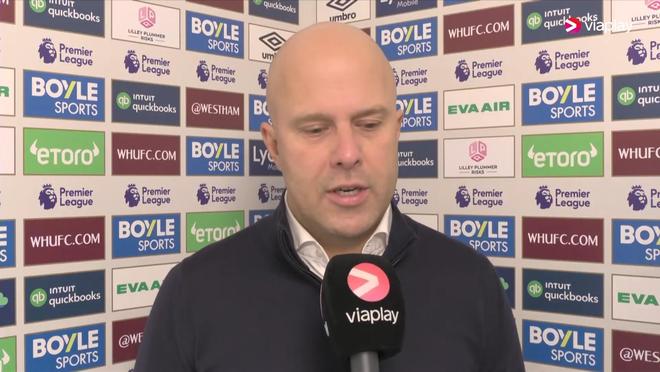 率队在英超第13轮客场2-0击败西汉姆联之后,利物浦主教练斯洛特接受了来自Viaplay的采访。