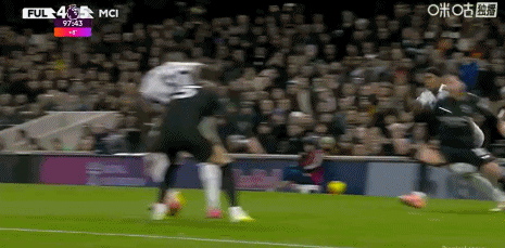 第57分钟,伊沃比兜射,皮球窜入死角,富勒姆2-5