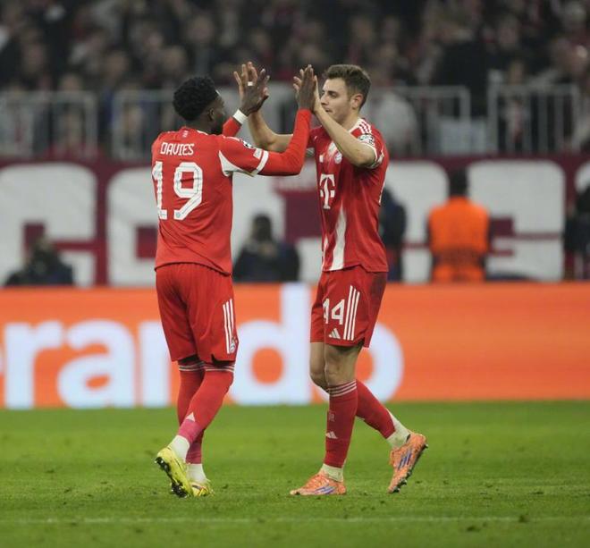 第70分钟莱默尔右路挑传禁区,卡尔停球抽射一气呵成,帮助拜仁2-1实现反超,17岁290天的卡尔也成为了欧冠历史上最年轻连续三场比赛取得进球的球员,7分钟之后拜仁锁定胜局,基米希右路45°传中,格纳布里头球摆渡到门前,若纳坦塔头球接力破门,打进自己欧冠生涯首球,将比分定格为了3-1。
