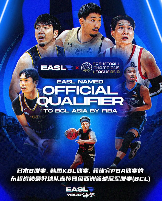 北京时间12月15日,EASL(东亚超级联赛,简称:东超)官方宣布:EASL成为BCL(亚洲篮球冠军联赛)亚洲区的官方资格赛,日本B联赛、韩国KBL联赛、菲律宾PBA联赛中在东超排名最高的球队自动获得BCL亚冠的参赛资格。