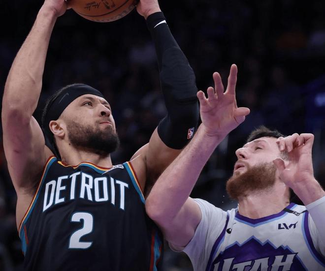 北京时间12月27日,NBA常规赛,爵士坐镇主场迎击活塞。本场比赛之前,活塞24胜6负排名东部第二,胜率仅次于雷霆,联盟唯二两支胜率达到80%的队伍,很难相信,活塞上赛季还在摆烂,曾经历一波28连败打破NBA历史纪录,仅仅一年后他们就彻底翻身,成为东部第一的超级黑马。主要原因在于年轻球员的崛起,当家球星坎宁安兑现天赋,毕竟也是状元出身,球队还有杜伦,汤普森这些潜力球星。此外,活塞主打的就是一个强硬,不惧怕身体对抗,防守压迫感十足,这也成为他们的一大优势。另一边的爵士队,本场比赛之前,10胜19负排名西部第12,作为西部鱼腩队之一。