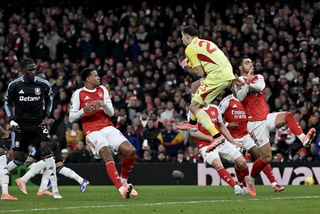 不过,连场恶战的维拉在力拼完上半场后,体能消耗也到了极致,此时的阿森纳只要能打破僵局,就能给维拉摧毁性的打击。于是到了下半场,压垮骆驼的最后一根稻草出现了——第47分钟,阿森纳获得全场第1次角球,萨卡开出的角球直奔球门,马丁内斯在加布里埃尔的干扰下脱手,皮球砸在加布里埃尔身上后入网。