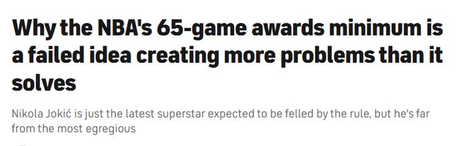 这一批评不仅针对65场规则,也指向了最佳阵容评选与薪资挂钩的机制,但两者在这一案例中紧密相关。现在,球员们有了一个明确的目标需要达成。