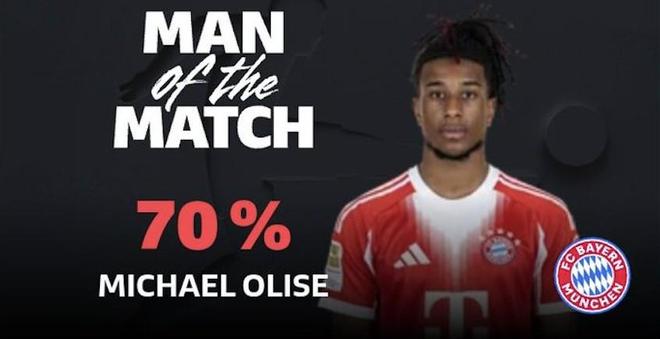 - 德甲 | 两球一助,奥利塞当选拜仁vs狼堡全场最佳球员