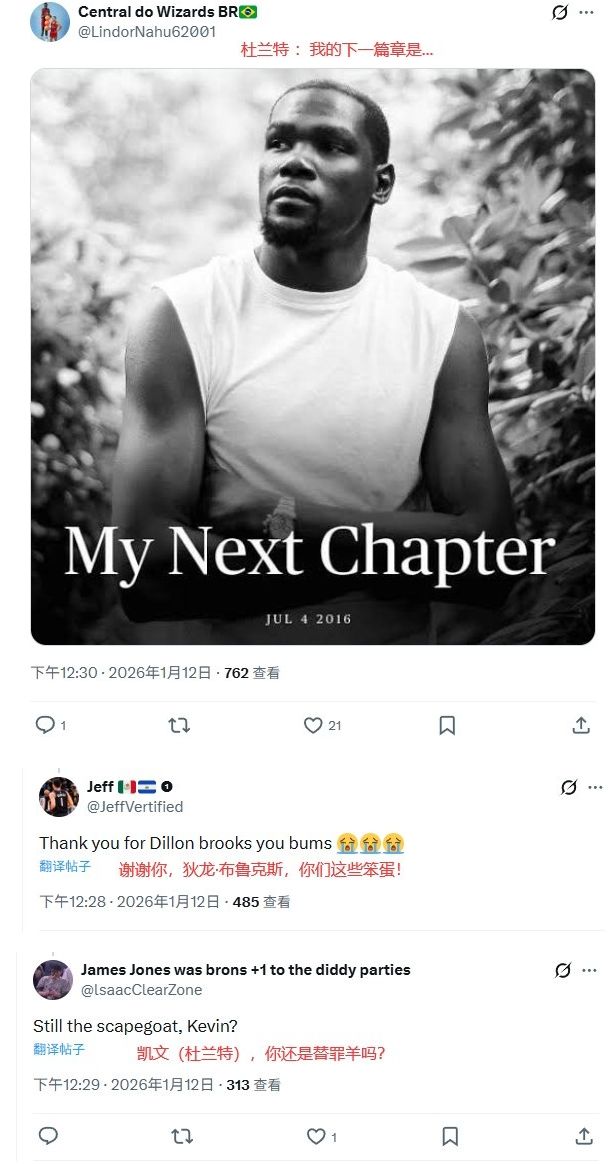 北京时间1月12日,火箭球迷终于感受到了太阳球迷的痛苦,杜兰特遭遇美国火蜜集体痛骂狂喷,夺冠密码曝光,终于懂了。