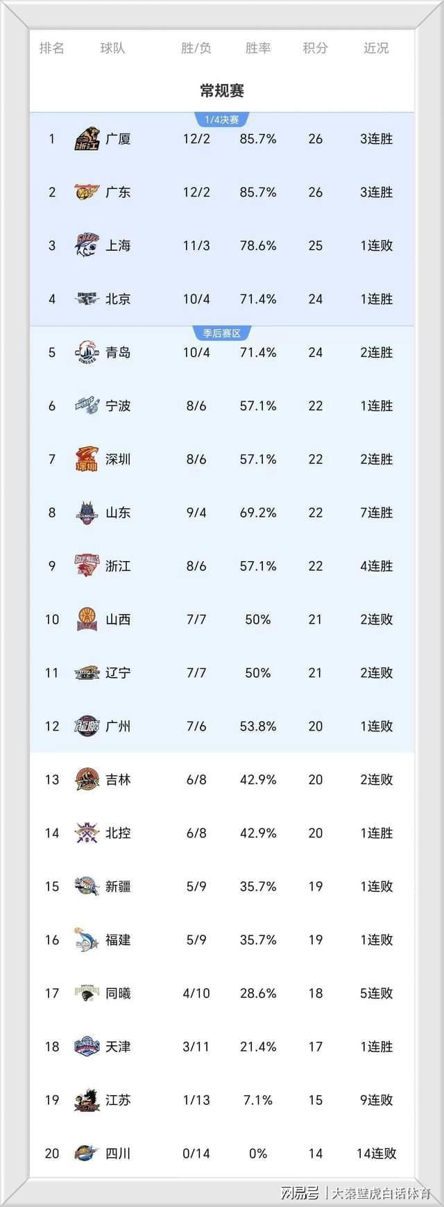 - CBA | 广东大胜,辽宁惨败上海爆冷,广厦逆转!CBA最新排名:榜首易主
