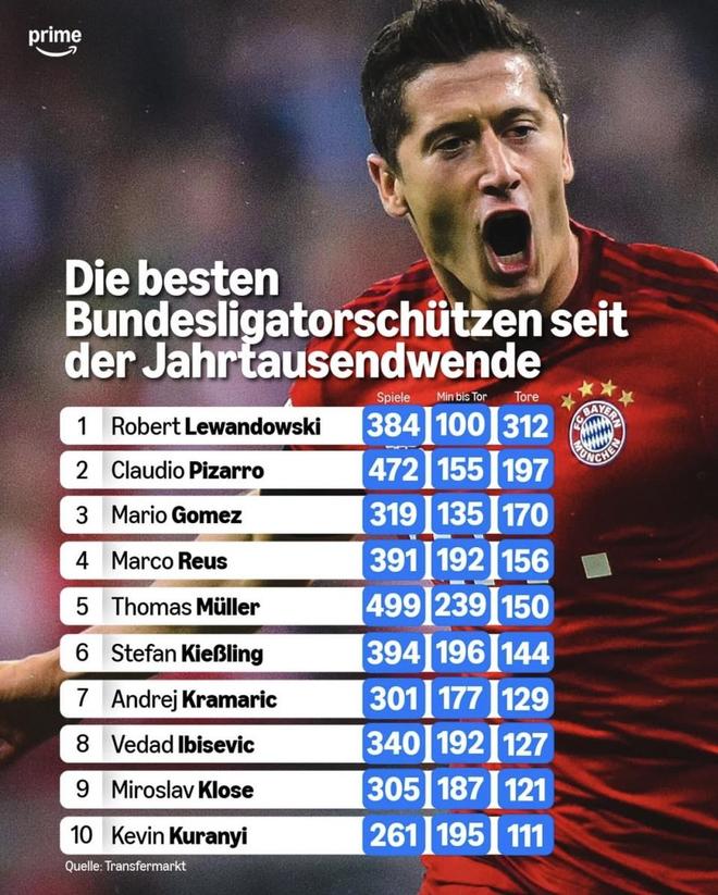 - 德甲 | 千禧年以来德甲最佳射手榜发布!穆勒第五名克洛泽只能排第九