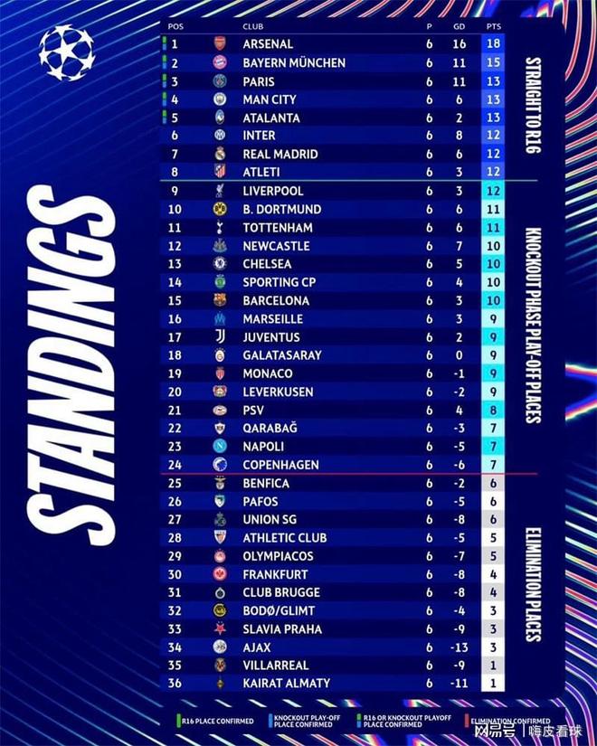 - 欧冠 | 一文看懂欧冠末轮最全出线“数学题”3分之差隔开12支球队!