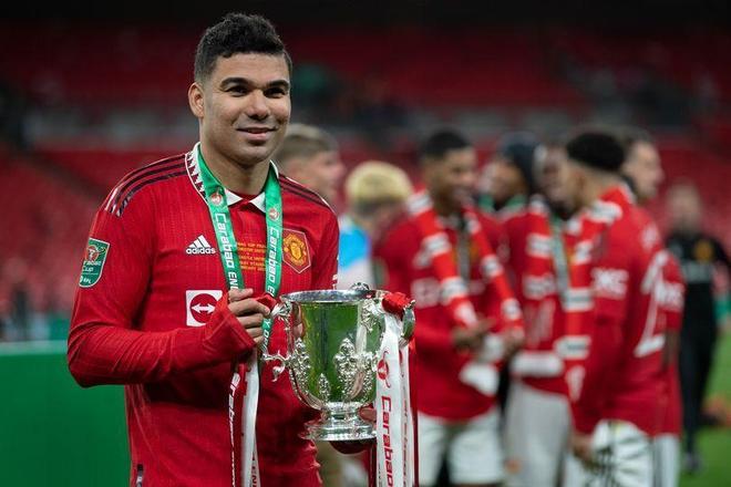2022年8月,曼联豪掷7070万欧元将当时已经30岁的卡塞米罗招至麾下,并为他提供了一份为期4年、周薪高达35万英镑的大合同。这笔交易,在当时引发了不少的质疑,但巴西后腰的加盟,确实给曼联中场注入了一针强心剂。首个赛季,他就为曼联出战51场各项比赛43次首发,贡献7球6助攻。在英格兰联赛杯与纽卡斯尔的较量中,卡塞米罗不仅首发出战打满全场,还利用任意球机会头球破门,为曼联最终2-0击败对手夺冠立下汗马功劳。值得一提的是,那座联赛杯冠军,也是继2016/17赛季穆里尼奥率队拿到联赛杯、欧联杯和社区盾杯小三冠之后,曼联首次染指正式比赛冠军。