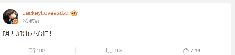 哥哥冲呀!jackeylove横扫GEN.G后发博:明天加油兄弟们!
